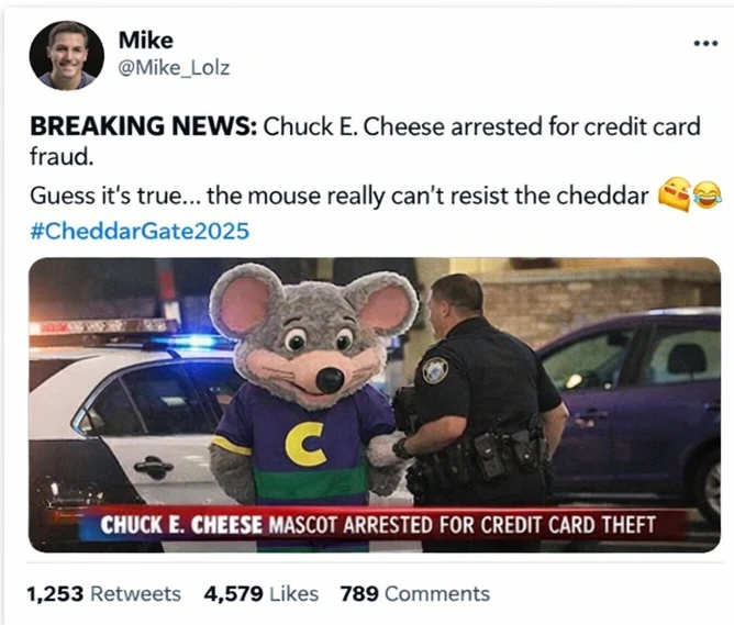 A woman accused Jones of stealing her credit card and using it without her permission. After obtaining surveillance footage from a store where the card was used, she identified the suspect as the mouse mascot.