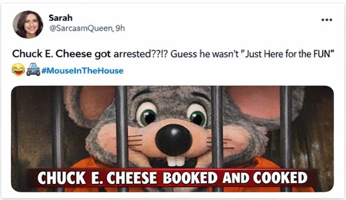 Jones, an employee at the Tallahassee Chuck E. Cheese, was arrested in full costume while he was in the process of taking a photo with a woman. Officers walked up to him and stated, “Chuck E’s a little bit busy, ma’am,”.