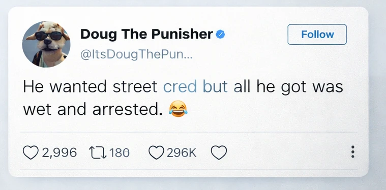 Wet, arrested, and a nice fine. I mean, at least have the money to pay for your antics.