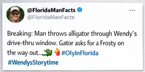 1.) https://news.sky.com/story/man-threw-alligator-into-wendys-drive-through-10161103