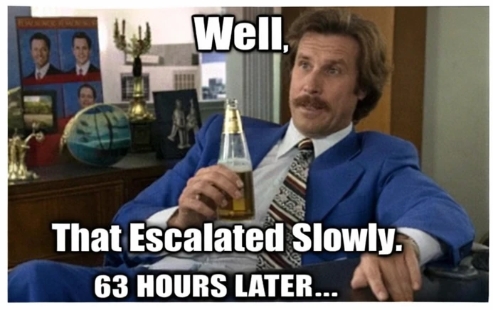 Sixty-three hours later is enough time to take a nap, assess your life choices, and still have time to make it worse. That’s a marathon of questionable decisions.